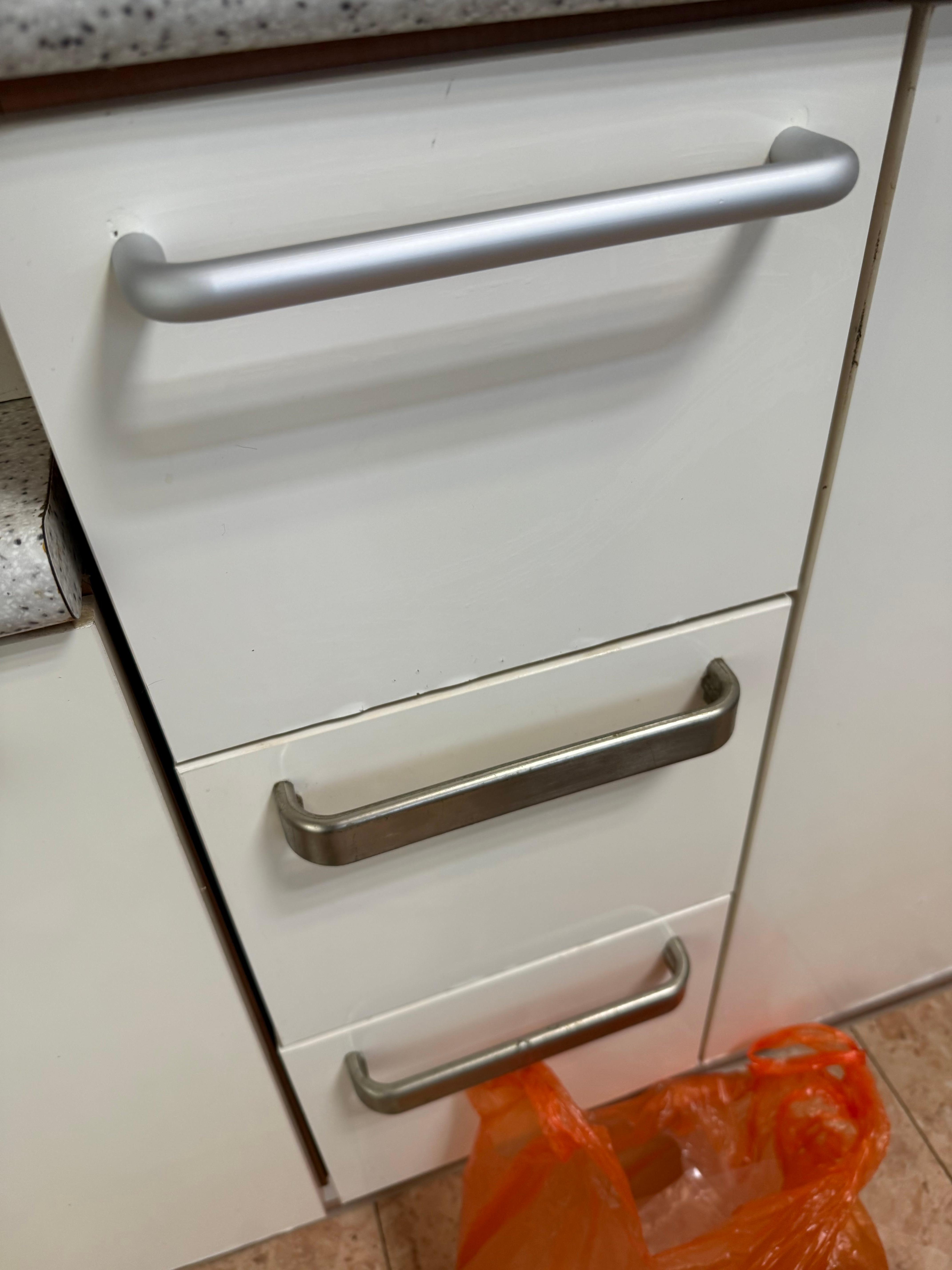 친구도 보더니 싱크대가 새거같아졌다며 놀랬다. 전체를 바꾸지 않고 작은 손잡이 하나만 바꿨을 뿐인데 효과는 상당했다. 물론 시트지까지 입히면 더욱 드라마틱한 효과가 있겠지만, 일이 많아지는데다가, 기포나 주름이라도 생기면 그 또한 스트레스다... 자신있는 사람이라면 시트지도 도전하면 부엌이 재탄생할것 같다. 나는 간편하게 손잡이만 바꿔도 대만족 중이다.